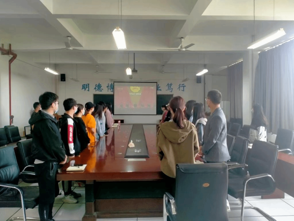 5月10日上午十点,庆祝中国共产主义青年团成立一百周年大会在北京人民大会堂隆重举行。中共中央总书记、国家主席、国家军委主席习近平出席大会并发表重要讲话。beat365中国在线体育组织师生党员观看大会直播并交流学习心得,我院党委副书记张郁和学生支部书记以及学生党员参加观看直播活动。